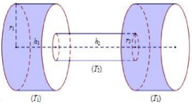 Một chi tiết máy bằng kim loại được tạo nên từ ba khối trụ như hình bên. Gọi \(\left( {{T_1}} \right)\) là khối trụ ở hai đầu và \(\left( {{T_2}} \right)\) là khối trụ ở giữa, lần lượt có bán kính và chiều cao tương ứng \({h_1},{r_1},{h_2},{r_2}\) là thoả mãn \({r_1} = 4{r_2},{h_1} = \dfrac{{{h_2}}}{2}\). Biết thể tích của khối \(\left( {{T_2}} \right)\) bằng \(30c{m^3}\) và khối lượng riêng của kim loại làm chi tiết máy bằng \(7,7\,g/c{m^3}\). Tính khối lượng của chi tiết máy.