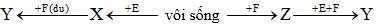 Biết X, Y, Z là các hợp chất khác nhau, mỗi mũi tên ứng với một phương trình hóa học. Các chất E, F thỏa mãn sơ đồ trên lần lượt là