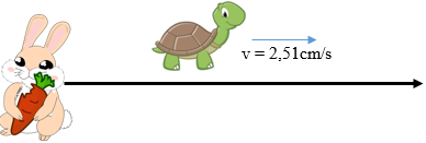 Một chú rùa chuyển động với tốc độ không đổi 2,51cm/s, trong lúc chú thỏ đang dừng lại và