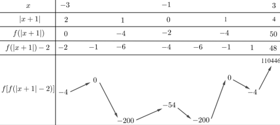 Vẽ bảng biến thiên của hàm số \(f\left[ {f\left( {\left| {x + 1} \right|} \right) - 2} \right]\) trên đoạn \(\left[ { - 3;3} \right]\).