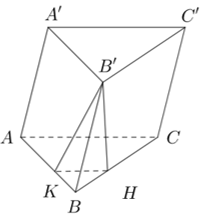 - Kẻ \(B'H \bot BC \Rightarrow B'H \bot \left( {ABC} \right)\).