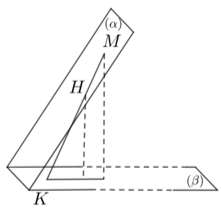 - Gọi \(K\) là giao điểm của \(MH,\,\,\left( \beta \right)\).