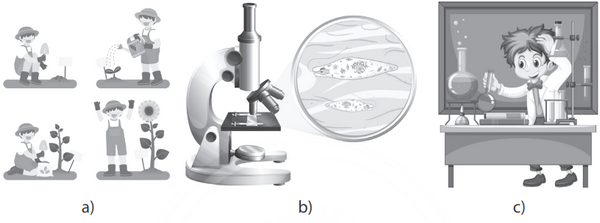 Em hãy cho biết các hình ảnh sau đây đang mô tả phương pháp nghiên cứu và học tập nào của môn Sinh học.