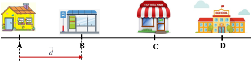 Trên đoạn đường thẳng có các vị trí A là nhà của bạn Nhật, B là trạm xe buýt, C là cửa hàng tạp hóa và D là trường học. Độ dịch chuyển của bạn Nhật trong trường hợp bạn Nhật đi từ nhà đến trường và quay lại trạm xe buýt là:
