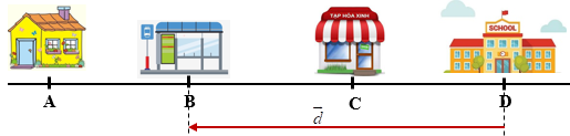 Trên đoạn đường thẳng có các vị trí A là nhà của bạn Nhật, B là trạm xe buýt, C là cửa hàng tạp hóa và D là trường học. Độ dịch chuyển của bạn Nhật trong trường hợp bạn Nhật đi từ trường học về trạm xe buýt là:
