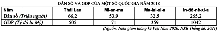 Cho bảng số liệu:Theo bảng số liệu, cho biết quốc gia nào có thu nhập bình quân đầu người