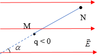 Với hình bên, công của lực điện trường khi dịch chuyển điện tích q \(\left( {q < 0} \right)\)