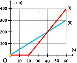 Các đồ thị (I), (II) biểu diễn chuyển động của xe (I) và xe (II). Dựa vào đồ thị cho biết hai xe gặp nhau lúc nào?
