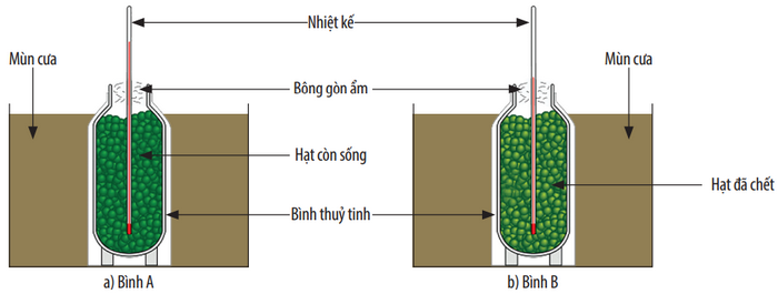 Quan sát thí nghiệm dưới đây Nhiệt độ trong bình A cao hơn bình B
