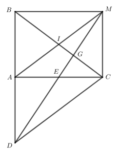 b) Lấy \(D\) là điểm đối xứng với \(B\) qua \(A\). Tứ giác \(AMCD\) là hình gì? Vì sao?