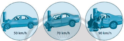 Quan sát hình dưới đây, nhận xét đúng về ảnh hưởng của tốc độ với sự an toàn của người và xe khi xảy ra tai nạn là: