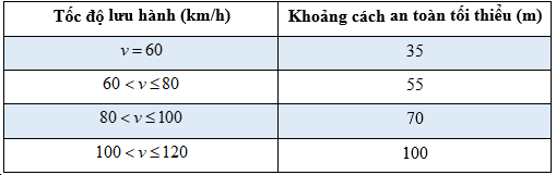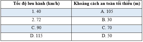 Từ bảng quy định khoảng cách an toàn tối thiểu dưới đây.Hãy ghép cặp tốc độ lưu hành