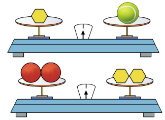 Quan sát hình vẽ, so sánh cân nặng của bóng đỏ và bóng xanh: