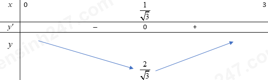Khảo sát hàm số và kết luận GTNN của hàm số trên \(\left( {0;3} \right]\).