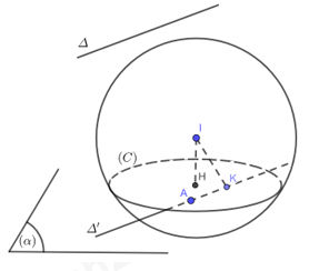 Gọi \(H\) là hình chiếu của \(I\) lên mp\(\left( \alpha \right) \Rightarrow H\) là tâm của đường tròn \(\left( C \right)\).