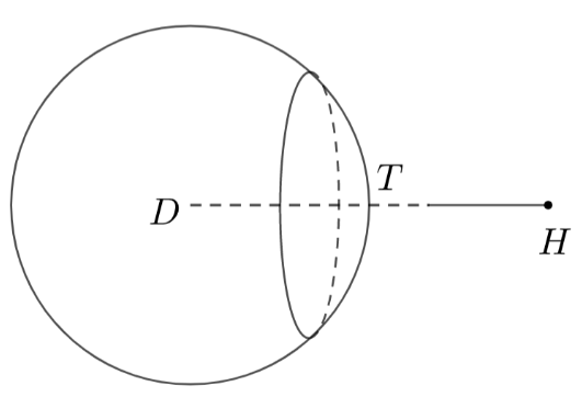 - Chứng minh \(T\) thuộc mặt cầu tâm \(D\) bán kính \(R\).