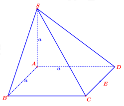 Cho hình chóp \(S.ABCD\) có đáy \(ABCD\) là hình vuông cạnh \(a\). Đường thẳng \(SA\) vuông góc với mặt phẳng đáy, \(SA = a\). Gọi \(E\) là trung điểm của \(CD\) (tham khảo hình bên). Khoảng cách từ điểm \(E\) đến mặt phẳng \((SAB)\) bằng