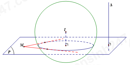 Trường hợp 2: mặt phẳng \(\left( P \right)\) tiếp xúc với mặt cầu \(\left( S \right)\) tại \(M\).