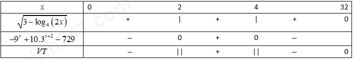 Có bao nhiêu số nguyên \(x\) thỏa mãn \(\dfrac{{\sqrt {3 - {{\log }_4}\left( {2x} \right)} }}{{ - {9^x} + {{10.3}^{x + 2}} - 729}} \le 0\) ?