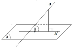 Góc giữa đường thẳng \(a\) và mặt phẳng \(\left( P \right)\) là góc giữa đường thẳng \(a\) và \(a'\).