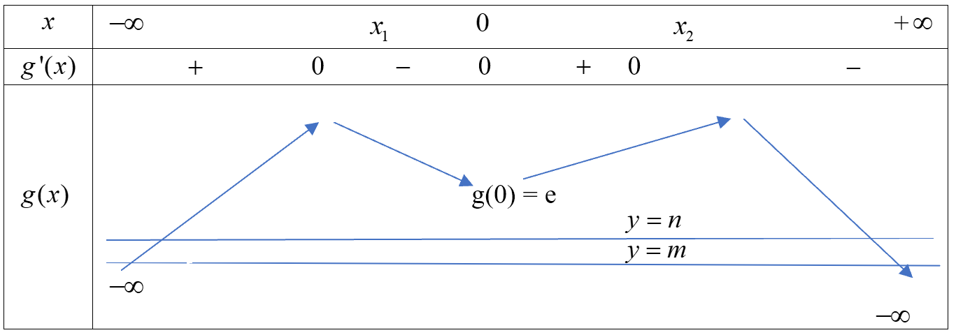 Biết rằng \(e > n\). Số điểm cực trị của hàm số \(y = f'\left( {f\left( x \right) - 2x} \right)\) bằng