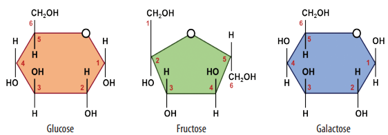 Đường đơn có 6 nguyên tử carbon, gồm ba loại chính là glucose, fructose và galactose. Các loại đường đơn này có hai chức năng chính: