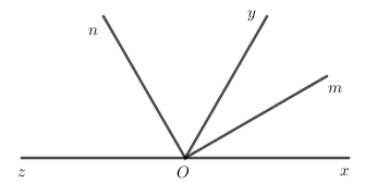 Cho \(\angle xOy = 60^\circ \). Vẽ tia \(Oz\) là tia đối của tia \(Ox\). Vẽ tia \(Om\) là tia phân giác của \(\angle xOy,On\) là tia phân giác của \(\angle yOz\)