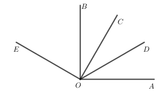 Cho góc vuông \(\angle AOB\), hai tia \(OC,OD\) ở trong đó sao cho \(\angle AOC = \angle BOD = 60^\circ \). Trên nửa mặt phẳng bờ \(OA\) có chứa tia \(OB\) vẽ \(OE\) sao cho \(OB\) là tia phân giác của \(\angle DOE\).