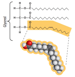 Quan sát cấu tạo phân tử triglyceride dưới đây, loại lipid này tồn tại ở trạng thái