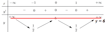 Cho hàm số y = f(x) có bảng biến thiên như sau: Số nghiệm của phương trình f(x) – 6 = 0