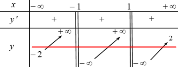 Hàm số \(y = f\left( x \right)\) xác định trên \(\mathbb{R}\backslash \left\{ { - 1;1} \right\}\), liên tục trên mỗi khoảng xác định và có bảng biến thiên như hình vẽ.