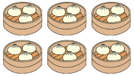 Mỗi khay có 3 chiếc bánh bao. Vậy 6 khay như thế có bao nhiêu chiếc bánh bao?