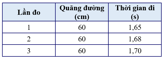 Sau đây là bảng ghi kết quả đo tốc độ của một ô tô đồ chơi chạy trên một tấm gỗ