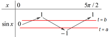 Số nghiệm thuộc đoạn \(\left[ {0;\dfrac{{5\pi }}{2}} \right]\) của phương trình \(f\left( {\sin x} \right) = 1\) là: