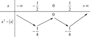 Hỏi phương trình \(2f\left( {{x^2} - \left| x \right|} \right) = 5\) có bao nhiêu nghiệm?