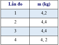 Bảng dưới đây thể hiện kết quả đo khối lượng của một túi trái cây bằng cân đồng hồ.