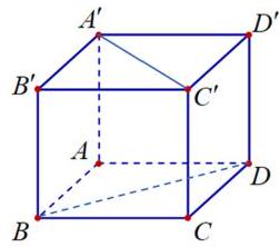 Cho hình hộp chữ nhật \(ABCD \cdot A'B'C'D'\) có \(AB = a,BC = 2a\) và \(AA' = 3a\) (tham khảo hình bên).