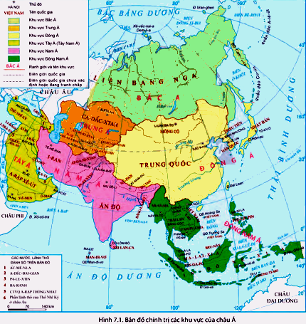 Kiến thức bài học: Bản đồ chính trị châu Á, các khu vực của châu Á