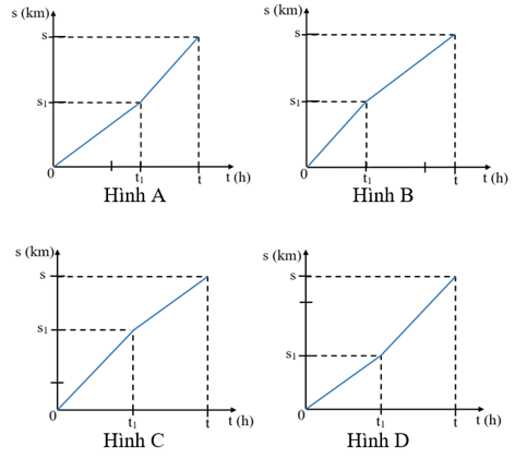 Hình vẽ nào dưới đây biểu diễn đúng đồ thị quãng đường – thời gian của mô tô?
