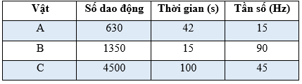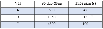 Có 3 vật dao động với kết quả sau: Thứ tự đúng vật dao động từ chậm đến nhanh