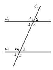 Cho hình vẽ bên, biết \({d_1}//{d_2}\).Câu nào sau đây đúng: