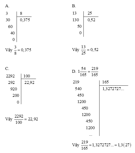 Trong các số sau, số nào dưới đây viết được dưới dạng số thập phân vô hạn tuần hoàn?