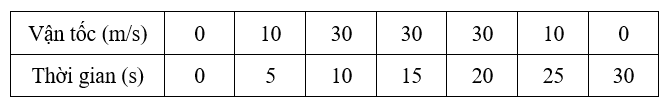 Dựa vào bảng ghi sự thay đổi vận tốc theo thời gian của một ô tô chạy trên quãng đường