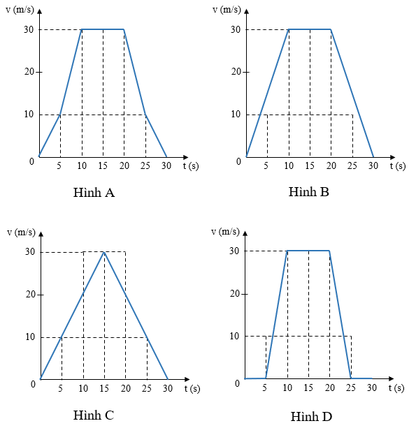 Hình vẽ nào dưới đây biểu diễn đồ thị vận tốc – thời gian của chuyển động?