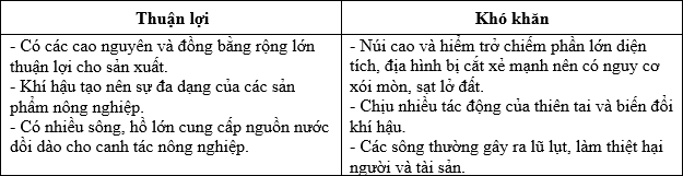 Nêu những thuận lợi và khó khăn của tự nhiên châu Á đối với sản xuất nông