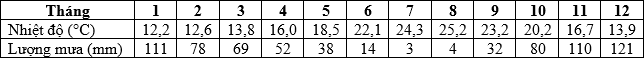 Cho bảng số liệu dưới đây: NHIỆT ĐỘ VÀ LƯỢNG MƯA TẠI AN-GIÊ, AN-GIÊ-RI (36°43’B,