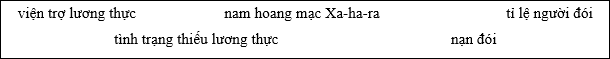 Nạn đói là (1)............ cho cuộc sống của người dân, một vấn đề xã hội nổi cộm đối với châu Phi hiện nay. Mỗi năm, thường xuyên có hàng chục triệu người dân châu Phi bị (2)............ đe dọa, trong đó, vùng (3)...... là khu vực chịu ảnh hưởng nặng nề nhất của tình trạng thiếu lương thực, nơi có (4)............ cao nhất thế giới. Hàng năm, rất nhiều quốc gia châu Phi phải phụ thuộc vào (5).....……… của thế giới.