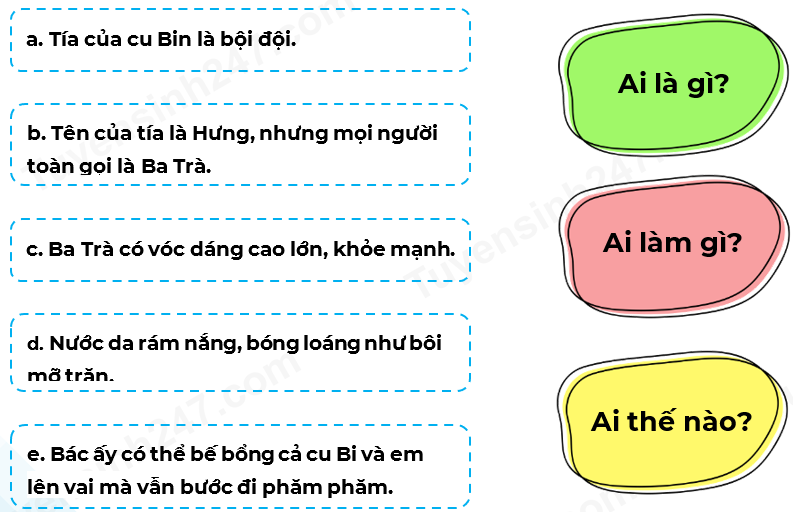 Căn cứ nội dung câu chuyện Câu kiểu Ai là gì? Ai làm gì? Ai thế nào?