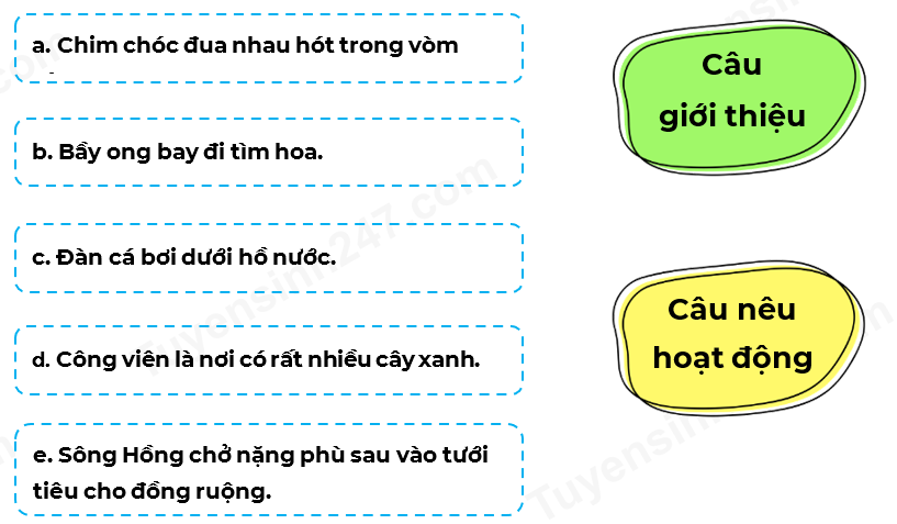 Căn cứ nội dung bài Từ ngữ chỉ sự vật, hoạt động; Câu giới thiệu, câu nêu hoạt động