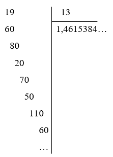 Tính kết quả của phép chia \(19:13\) làm tròn đến hàng phần mười